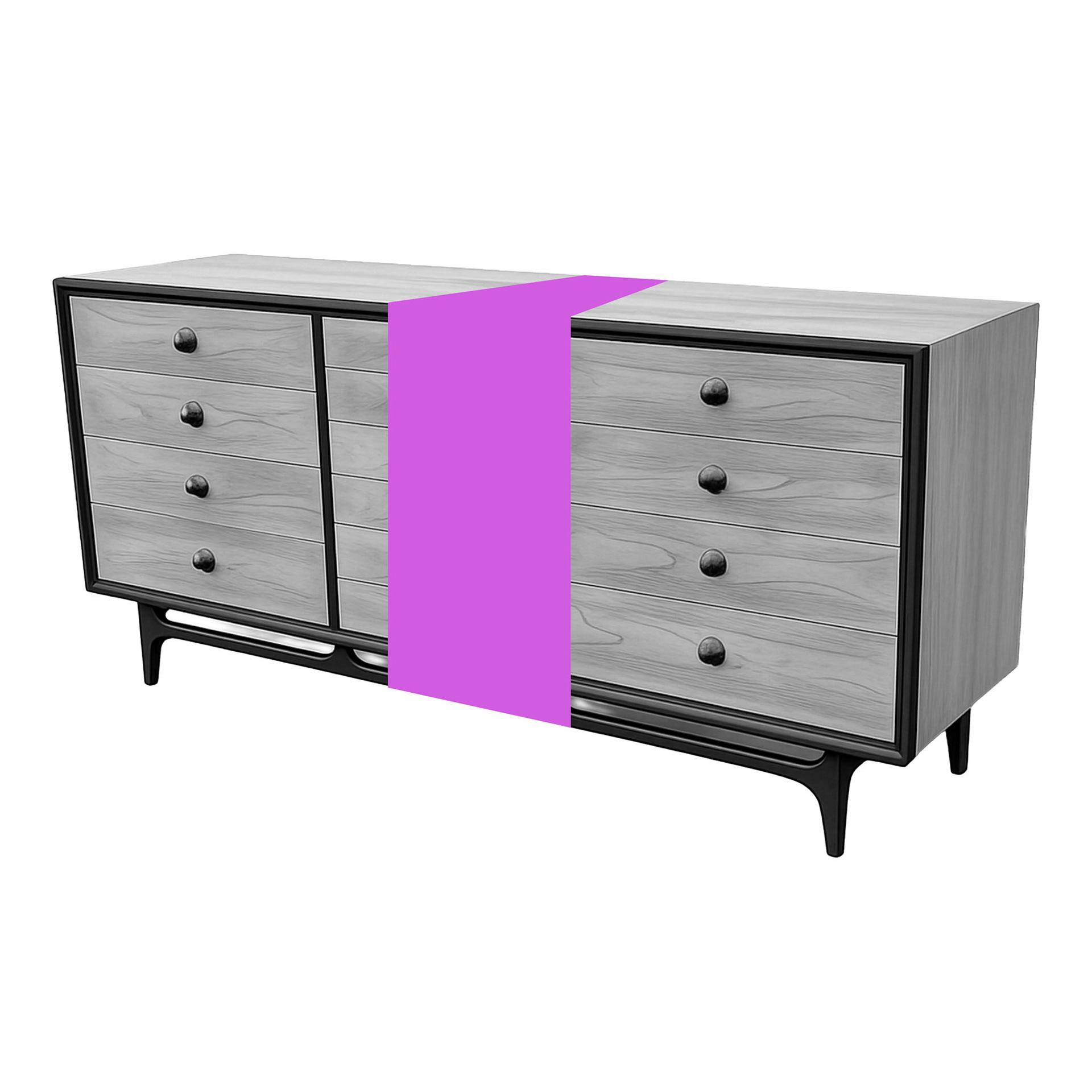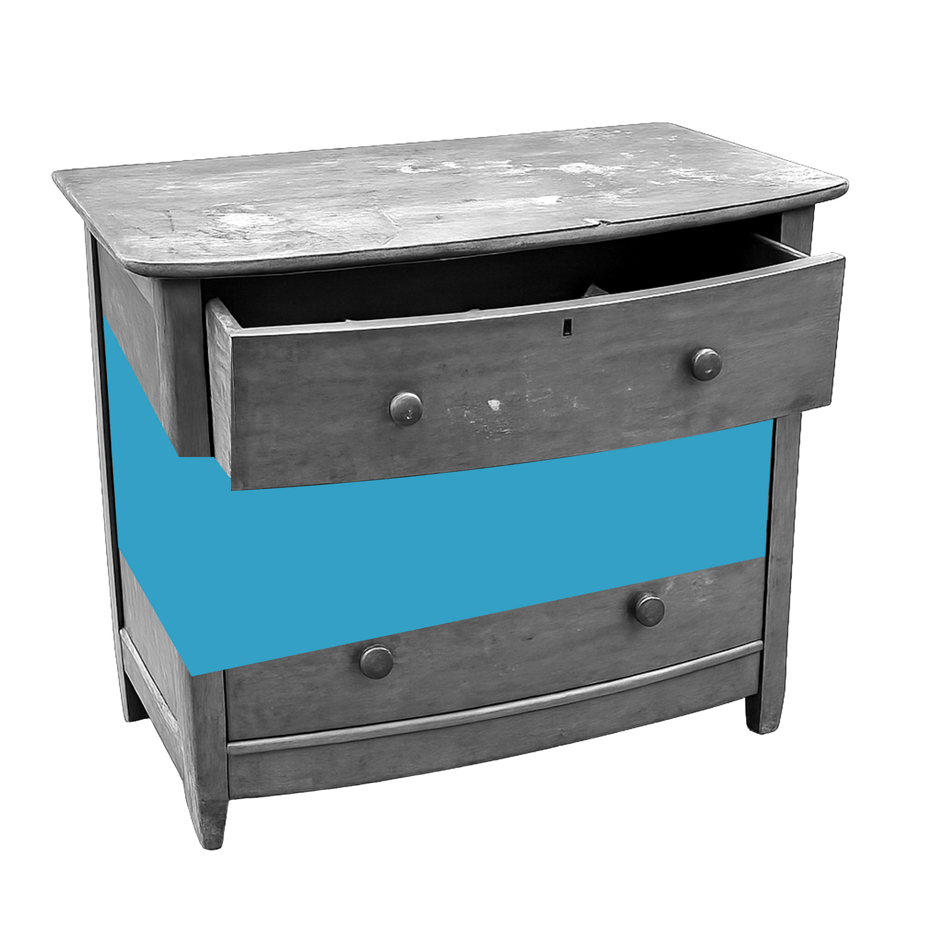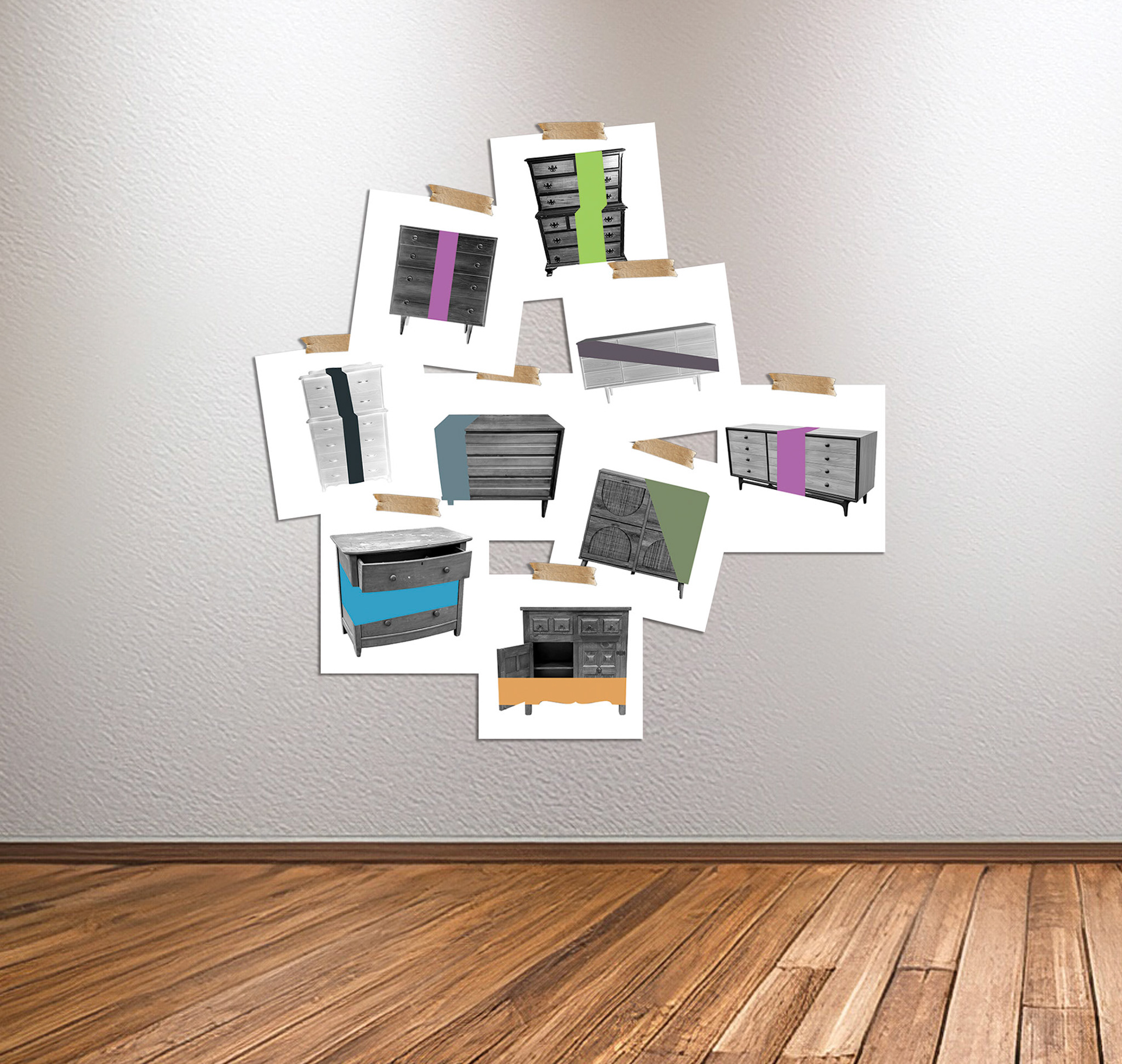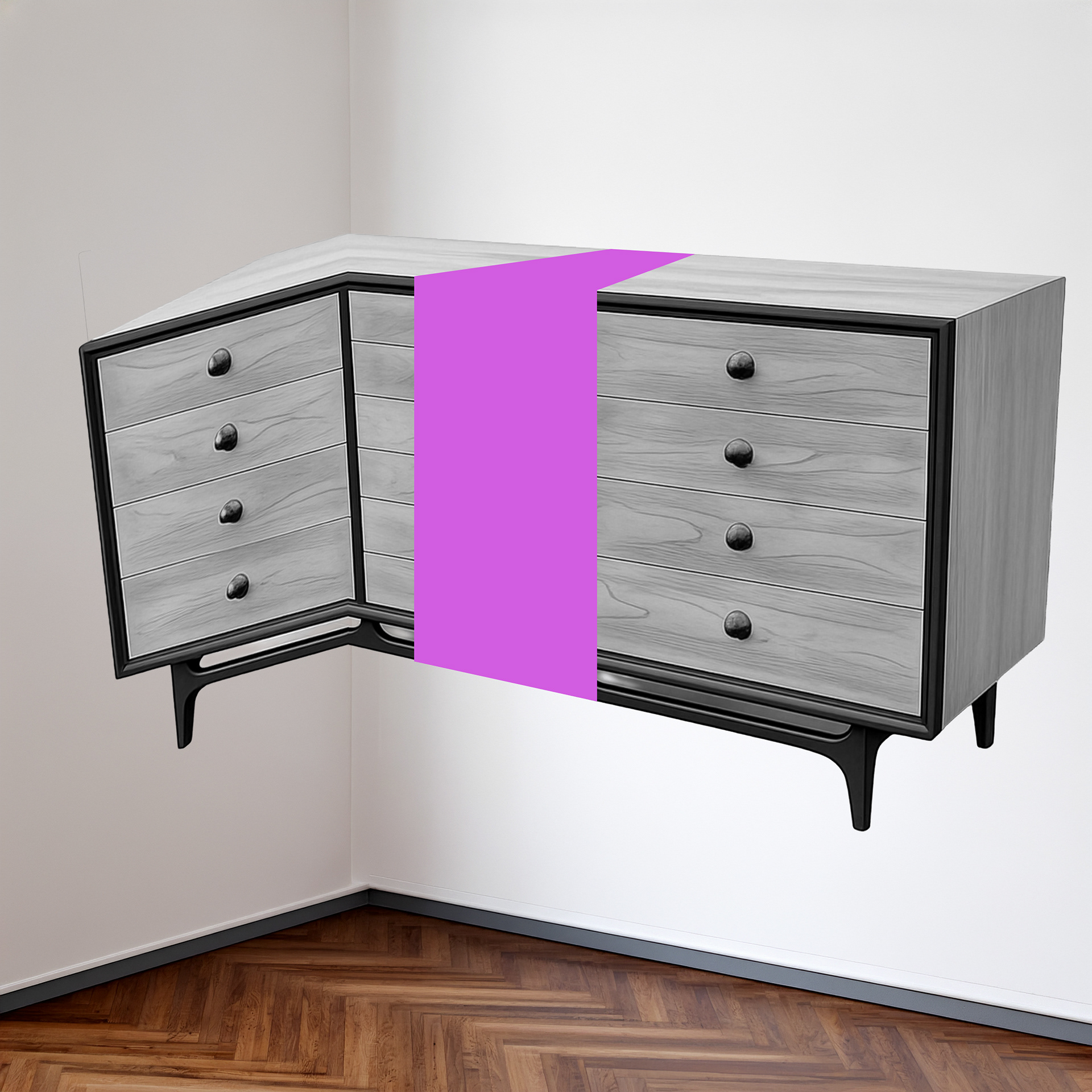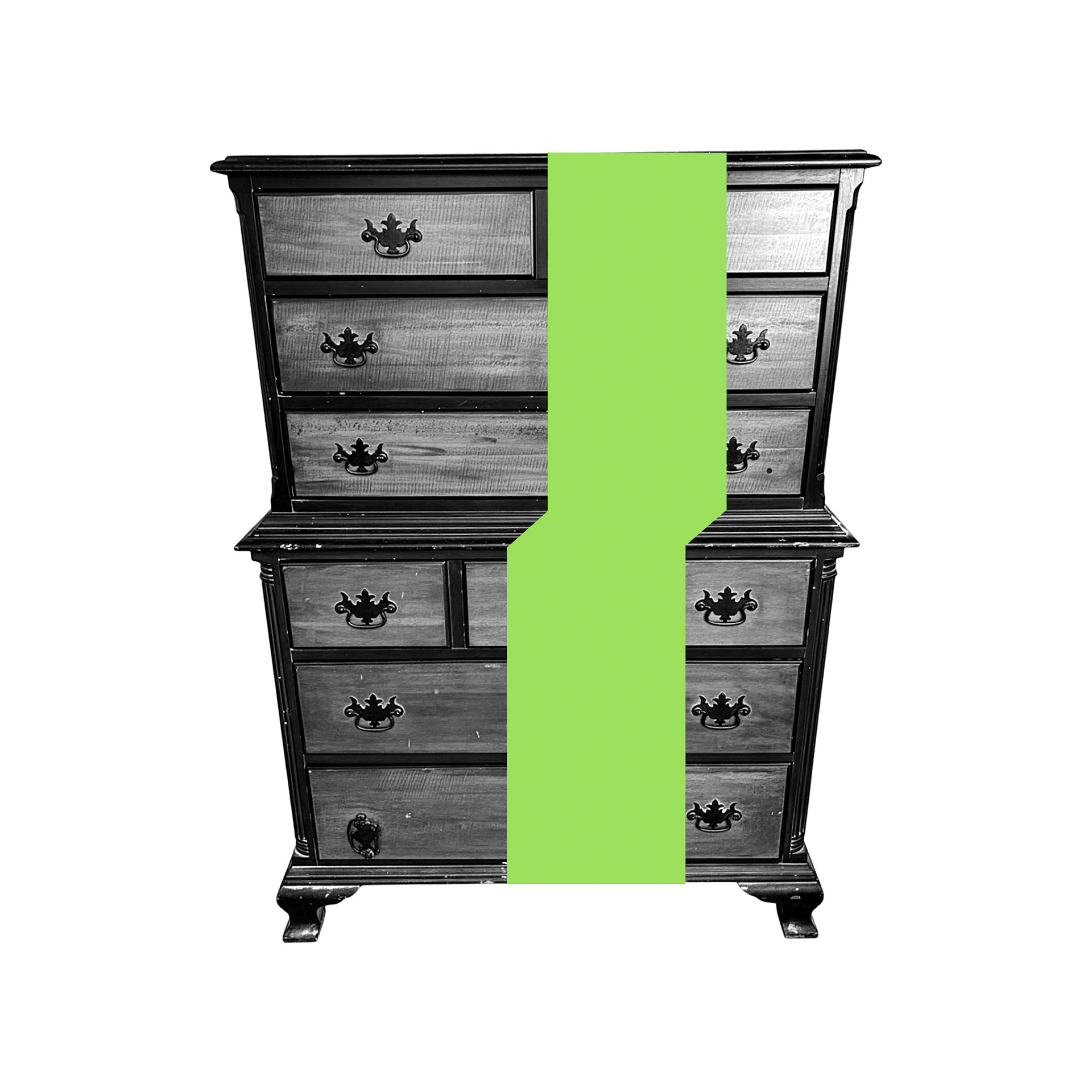 Alves repurposes casual Facebook Marketplace furniture photos into quietly uncanny portraits of domestic life. A single band of solid color interrupts each image emphasizing how digital manipulation polishes lived experience. The obscured area invites viewers to imagine what is missing, foregrounding how much of a life is edited out in the act of selling an object online.