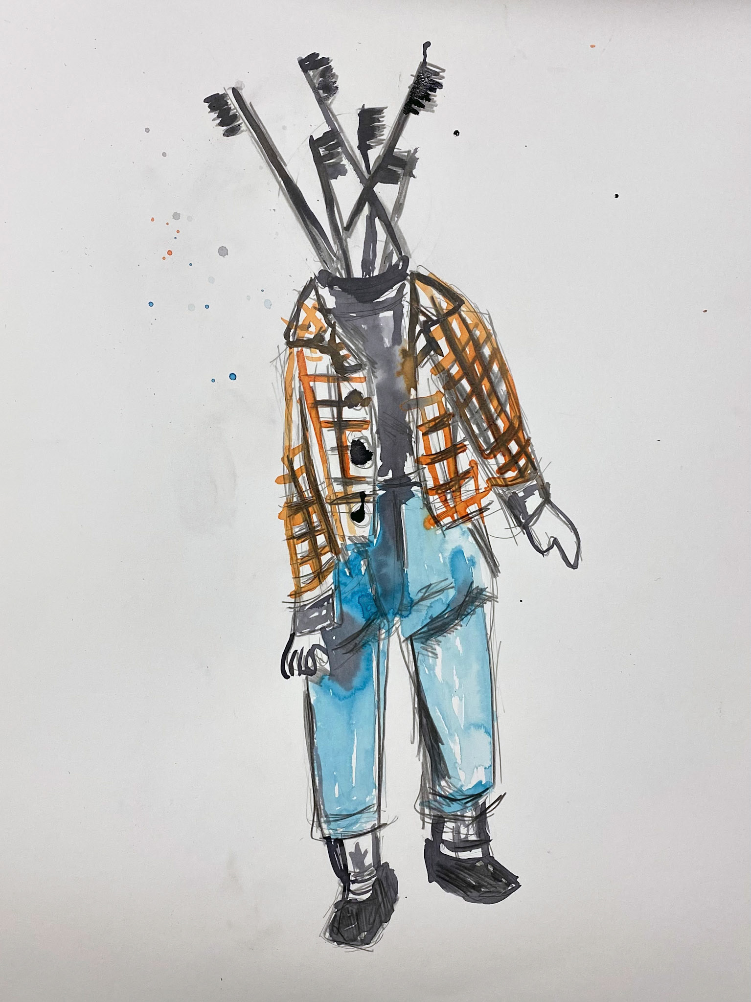 Charcoal, Acrylic and Ink on paper, 18" x 24"